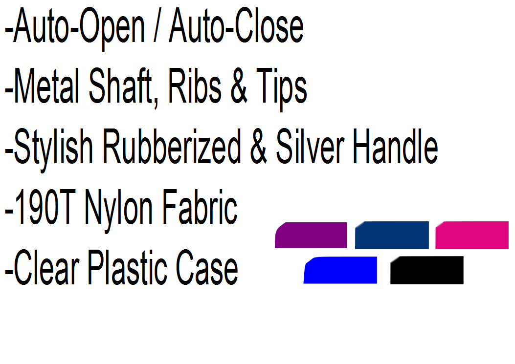 Umbrellas Catagories Just In! 37In 42In 46In 48In 54In 60In 62In 68In Childrens Umbrellas Auto / Auto Solid Deluxe (UM-001W) Auto Open Two-Tone Deluxe (UM-002W) Auto Deluxe Black (UM-003) Super Mini (UM-011) Solid Deluxe (UM-035) Auto Deluxe (UM-046) Auto Windproof Super Mini (UM-048) Auto Deluxe (UM-492) 42" Auto/Auto Deluxe UM-046 50 Pieces 100 Pieces250 Pieces 600 Pieces1200 Pieces 5(P) $16.25 $16.00$15.75$15.50$15.25