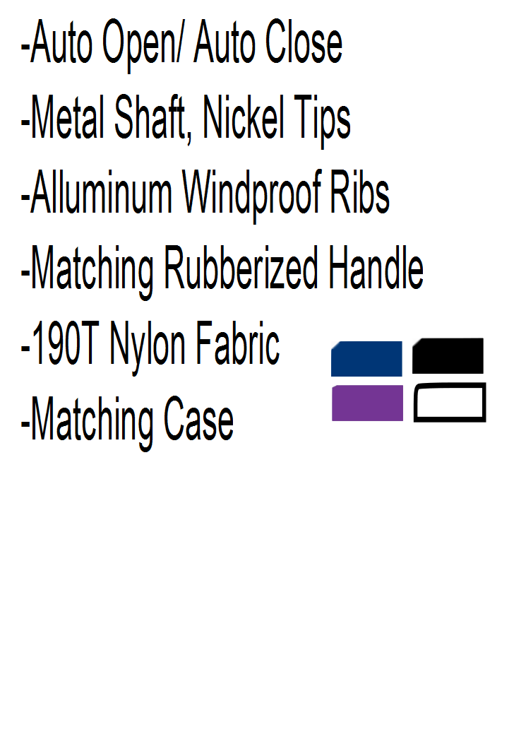 Umbrellas Catagories Just In! 37In 42In 46In 48In 54In 60In 62In 68In Childrens Umbrellas Auto / Auto Solid Deluxe (UM-001W) Auto Open Two-Tone Deluxe (UM-002W) Auto Deluxe Black (UM-003) Super Mini (UM-011) Solid Deluxe (UM-035) Auto Deluxe (UM-046) Auto Windproof Super Mini (UM-048) Auto Deluxe (UM-492) Auto/Auto Solid Deluxe UM-035 50 Pieces 100 Pieces250 Pieces 600 Pieces1200 Pieces 5(P) $18.00 $17.50$17.00$16.55$16.00
